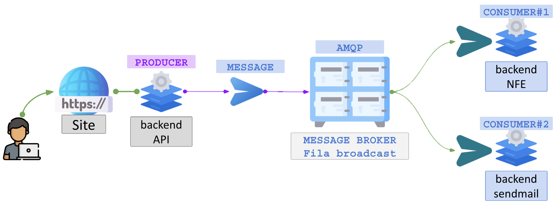 Essa arquitetura se chama “desacoplamento de sistema“. Esse é o papel do RabbitMQ em um ambiente de engenharia de software.