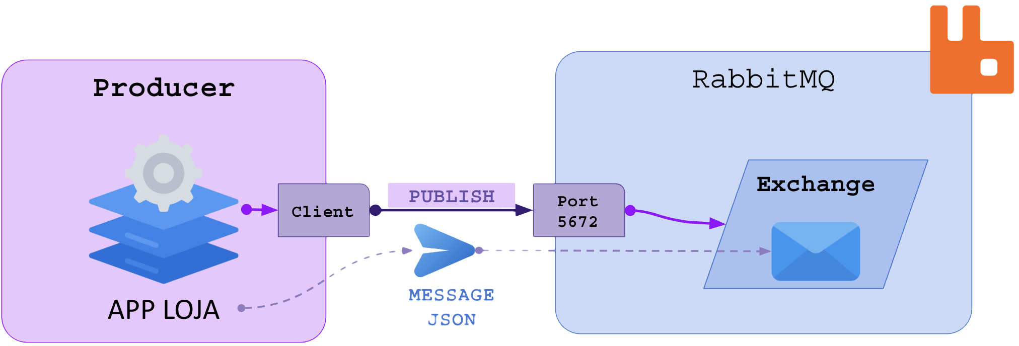 O producer publicou (PUBLISH) uma nova mensagem na EXCHANGE (ela precisa ter um nome):