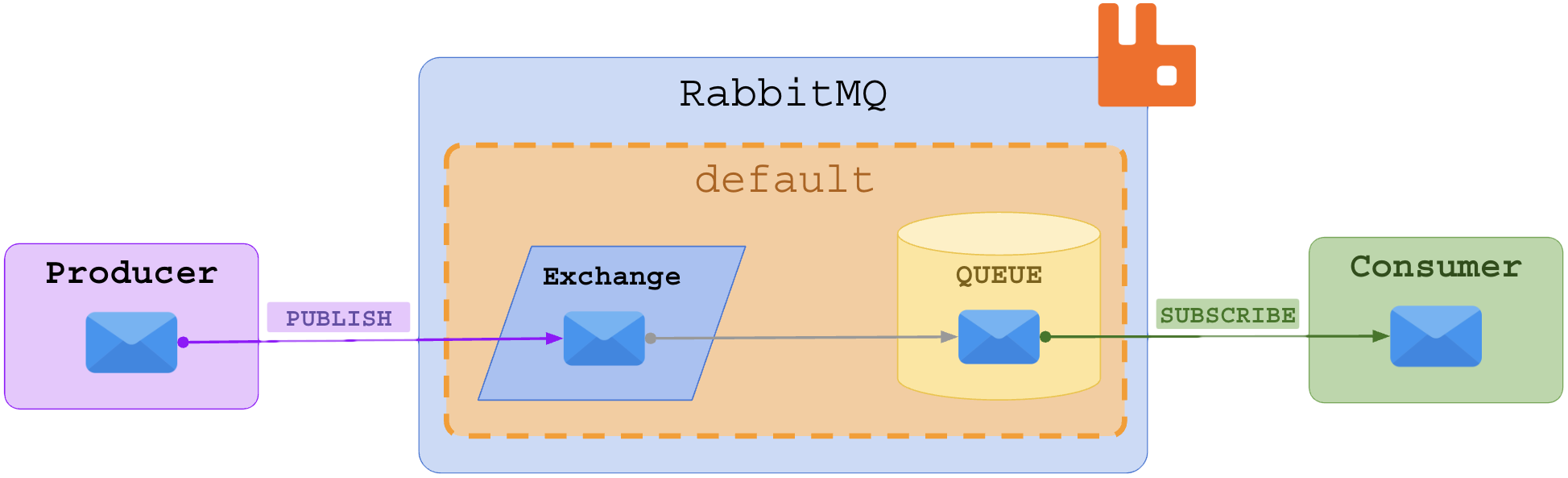 O vhost padrão se chama “/” (barra), eu pessoalmente altero para “default” por meio da variável de ambiente RABBITMQ_DEFAULT_VHOST: